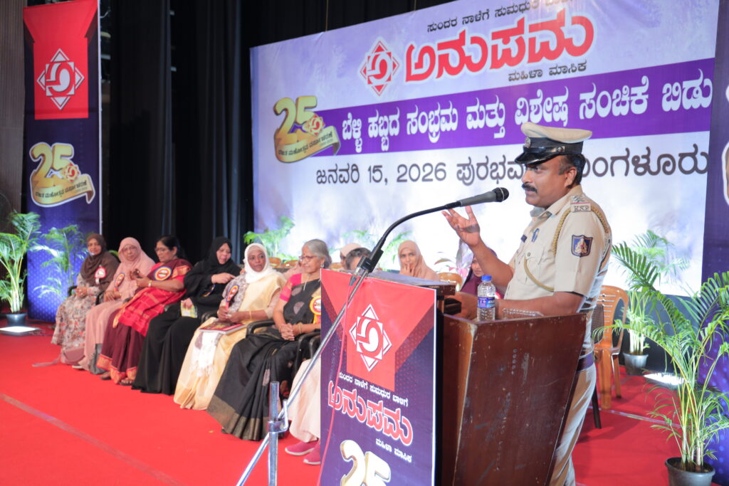 ಮಂಗಳೂರು ದಕ್ಷಿಣ ಮಹಿಳಾ ಪೊಲೀಸ್ ಠಾಣಾ ಇನ್ಸ್ಪೆಕ್ಟರ್ ಬಾಲಕೃಷ್ಣ, ಅನುಪಮ ವೆಬ್ ಪೋರ್ಟಲ್ ಬಿಡುಗಡೆ ಮಾಡಿ ಮಾತನಾಡುತ್ತಾ “ಮಹಿಳೆ ಒಂದು ಶಕ್ತಿ. ಮಹಿಳೆಯರಿಗೆ ಇಂದು ಮನೆಯಲ್ಲಿ ಬಹಳಷ್ಟು ಮಾನಸಿಕ ಕಿರುಕುಳ, ಆರ್ಥಿಕ ಒತ್ತಡ, ನಿರ್ಬಂಧನೆ ಕಾಡುತ್ತಿದೆ. ಅವೆಲ್ಲವನ್ನು ಮೀರಿ ಮಹಿಳೆ ಎದ್ದು ನಿಲ್ಲಬೇಕಾಗಿದೆ. ಮನೆಯಲ್ಲಿ ತಂದೆ-ತಾಯಿ ಜಗಳವಾಡುತ್ತಿದ್ದರೆ ಅದು ಮಕ್ಕಳ ಮೇಲೆ ಕೆಟ್ಟ ಪರಿಣಾಮ ಬೀರುತ್ತದೆ. ಹಾಗಾಗಿ ಮನೆಯಲ್ಲಿ ಮಕ್ಕಳೆದುರು ಗಂಡ-ಹೆಂಡತಿ ಜಗಳ ನಿಲ್ಲಿಸಬೇಕು” ಎಂದು ಕಿವಿಮಾತು ಹೇಳಿದರು.